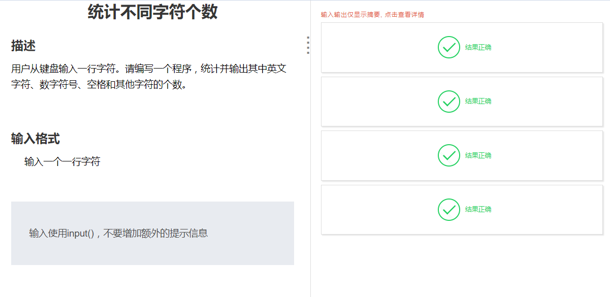 按照顺序输出字母,数字,空格,及其他字符的个数,个数以空格分隔