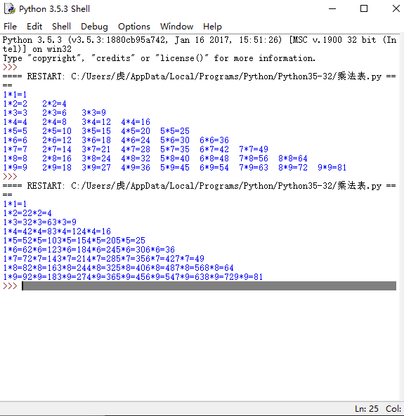 2)九九乘法表