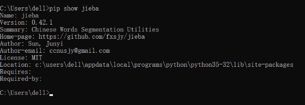 方法一:输入pip show +包名,如果安装成功则可看到第三方包的信息,如下图所示;