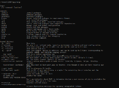 - 查阅资料进一步了解pip 安装命令的参数 运用相关命令查询本地计算机已经安装的包;