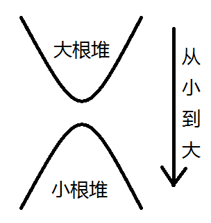 进行插入操作时,将新数与大根堆堆顶比较,若小于大根堆堆顶则插入大根堆,否则插入小根堆