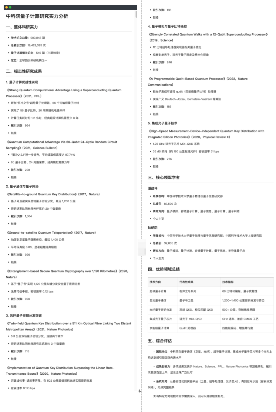 例如:输入“中科院在量子计算领域的研究实力具体怎样?”