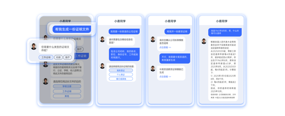 目前,平台内置15个AI Agent,覆盖人力资源全业务场景。通过机器人打通软件和服务的双通道,易路iBuilder助力重塑企业人力资源全业务流程、赋能HR轻松完成线上线下业务的精确办理,以下结合典型应用场景做简要分析。