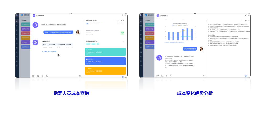 该企业引入易路iBuilder平台,通过与业务的深度打通,iBuilder在企业内部不仅承担起解答员工问询、开具证明等一系列工作,且能够实时汇总业务信息,依据HR及管理层的要求生成多维度分析报表,例如指定区域/门店人力成本、指定团队或者个人人力成本等,还可以分析趋势,挖掘趋势变化背后的原因。HR团队被从繁琐的数据整理、合并、计算工作中释放出来,更快更好的响应管理层的需求。