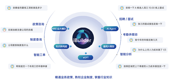 为了更好地赋能企业人力资源高效运转,易路还推出了AI-iBuilder平台。iBuilder以覆盖人力资源全业务场景的15个AI Agent,实现了对企业人力资源全业务流程的重塑。通过机器人打通软件和服务的双通道,iBuilder赋能HR轻松完成线上线下业务的精确办理,释放更大的业务价值。iBuilder主要包含招聘数字助理、入职数字助理、HR数字员工助理、AI寻才官、AI面试官、HR高管招聘顾问、智能薪酬顾问、绩效目标教练、HRBP助理、智慧共享服务中心、智能分析助理、人力成本分析师、AI培训师、AI人才官、AI个人发展助理等功能模块。这些AI Agent能够为企业提供更加智能化、高效化的人力资源服务,帮助企业实现人力资源管理的数字化转型。