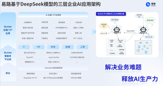 作为国内HR SaaS的领军企业,易路人力资源科技于2022年开始部署AI相关产品,陆续推出小易同学等AI应用,并于2024年发布国内首个HR智能体平台—iBuilder,更是于2025年春节前夕率先为iBuilder接入DeepSeek R1/V3,占尽市场先机,其长期服务的世界500强、行业头部客户也成为首批受益者,在iBuilder中预置的38个AI Agent智能体的助力下,重塑HR业务全场景流程,实现了效率的跃迁。iBuilder智能体平台以“垂直深耕、开箱即用”为核心理念,不仅填补了国内HR领域原生AI解决方案的空白,更通过技术创新与商业落地的双重突破,重新定义了AI在人力资源场景中的价值标准。