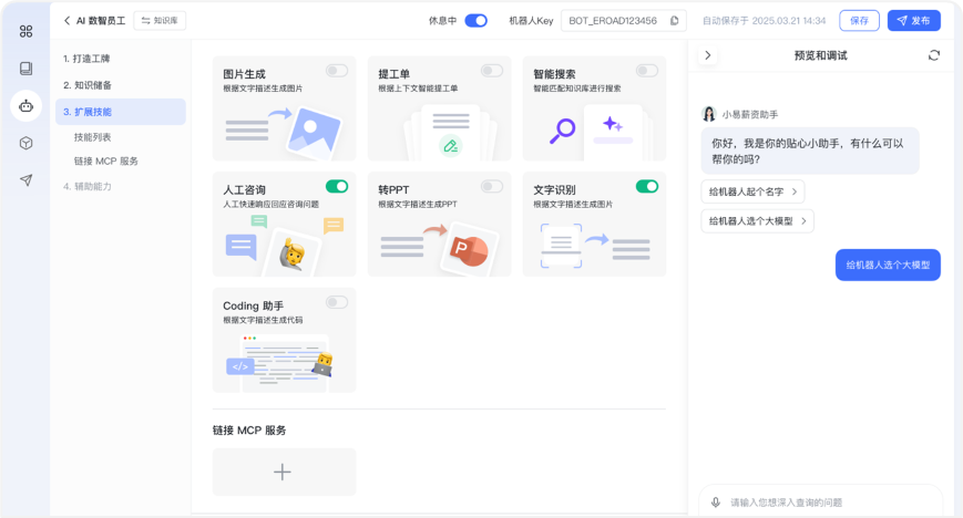 • 角色化智能体:预置的38个Agent可承担招聘官、薪酬顾问、培训师等角色,通过自然语言配置即可上岗;