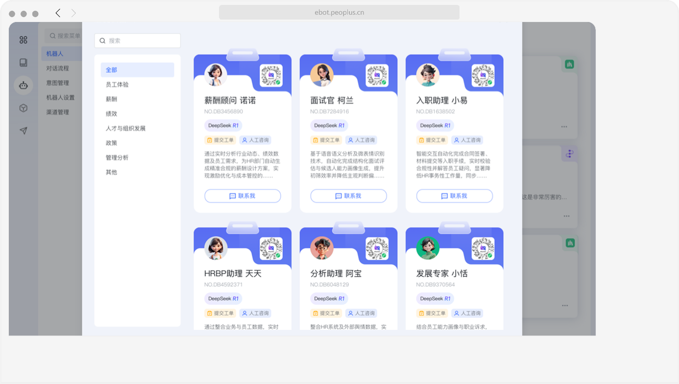 目前,易路iBuilder智能体平台基于HR行业大模型、DeepSeekR1/DeepSeekV3、ChatGPT等已研发并内置38个智能体,覆盖薪酬之外的招聘、绩效、人才培训等多场景中,全面支持AI HR全场景深度融合,帮助企业及HR管理快速落地、安全使用: