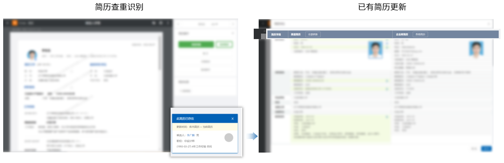 ○【未下载简历查重】:支持与历史简历比对,当发现重复简历时,HR可在系统内一键完成已有的历史简历内容更新,避免简历重复购买的同时,提升人才库信息准确度;