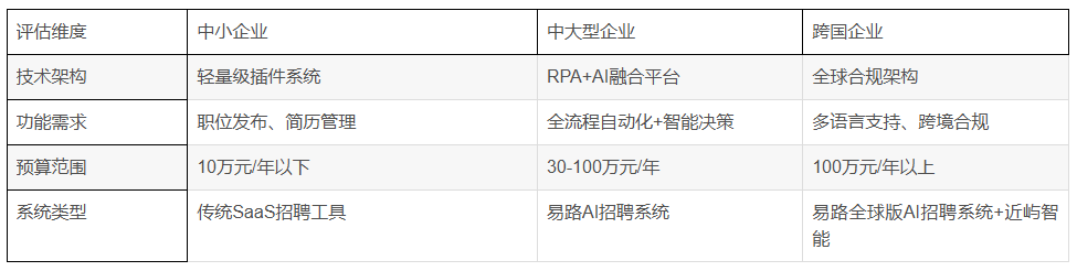 • 企业规模适配:年招聘量低于500人的中小企业,传统插件系统已能满足基本需求;而拥有复杂招聘矩阵的中大型企业,应选择易路等支持日均处理数千份简历的RPA驱动平台。