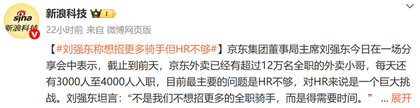 近日,京东集团董事长刘强东近期在内部讲话中明确表示:不是不想招更多人,而是HR不够。