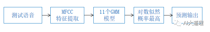 在识别、预测阶段,对于某句话,对数似然最大的模型对应的字符为当前语音数据的预测结果。