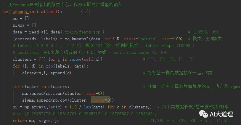(2)K-Means算法进行初始化GMM参数。