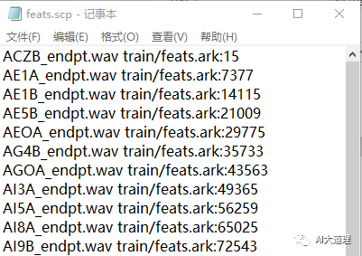 feats.scp:语音识别工具kaidi提取的特征文件之一,句子id到特征数据真实路径和位置的映射。