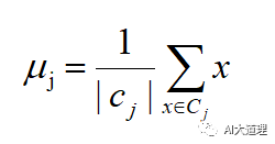 c) 对于j=1,2,...,k,对Cj中所有的样本点重新计算新的质心