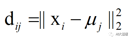 b) 对于i=1,2...m,计算样本xi和各个质心向量μj(j=1,2,...k)的距离: