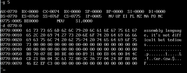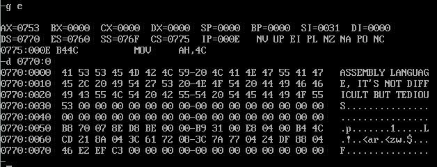 data segment str1 db "assembly language, it's not difficult but tedious" len equ $ - str1 data ends stack segment db 16 dup(0) stack ends code segment assume cs:code,ds:data,ss:stack start: mov ax,data mov ds,ax mov si,offset str1 mov cx,len call strupr mov ah,4ch int 21h strupr: s: mov al,ds:[si] cmp al,'a' jb next cmp al,'z' ja next and al,0dfh;1101 1111 mov ds:[si],al next: inc si loop s ret code ends end start