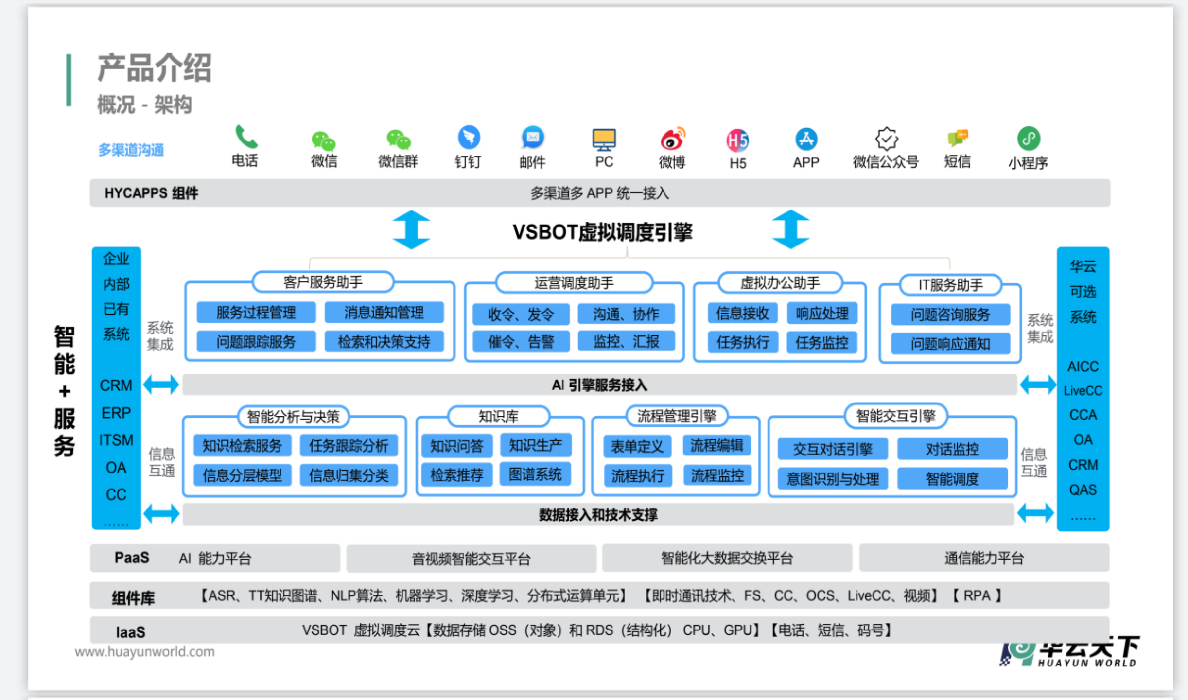 随着人工智能技术的落地,AI技术被越来越多的应用到客户服务领域。基于华云天下自主研发的AI语音调度引擎和人机交互技术,智能IVR、智能客服机器人、智能外呼机器人等多款智能产品先后上线,同时实现了全线产品智能化升级。近几年华云天下先后成为阿里工业大脑战略合作伙伴、百度智能客服生态合作伙伴、科大讯飞战略合作伙伴以及京东云plus战略合作伙伴。不止于此,在智能化的路子上,华云跳出智能客服的圈子,为国家电网提供了调度机器人、财务助手、智能写作机器人、基于知识图谱的问答机器人、基于联合共享办公的智能电话前台机器人——前台宝、基于个人的电话助理小秘书——华小秘等上百款机器人及应用场景。