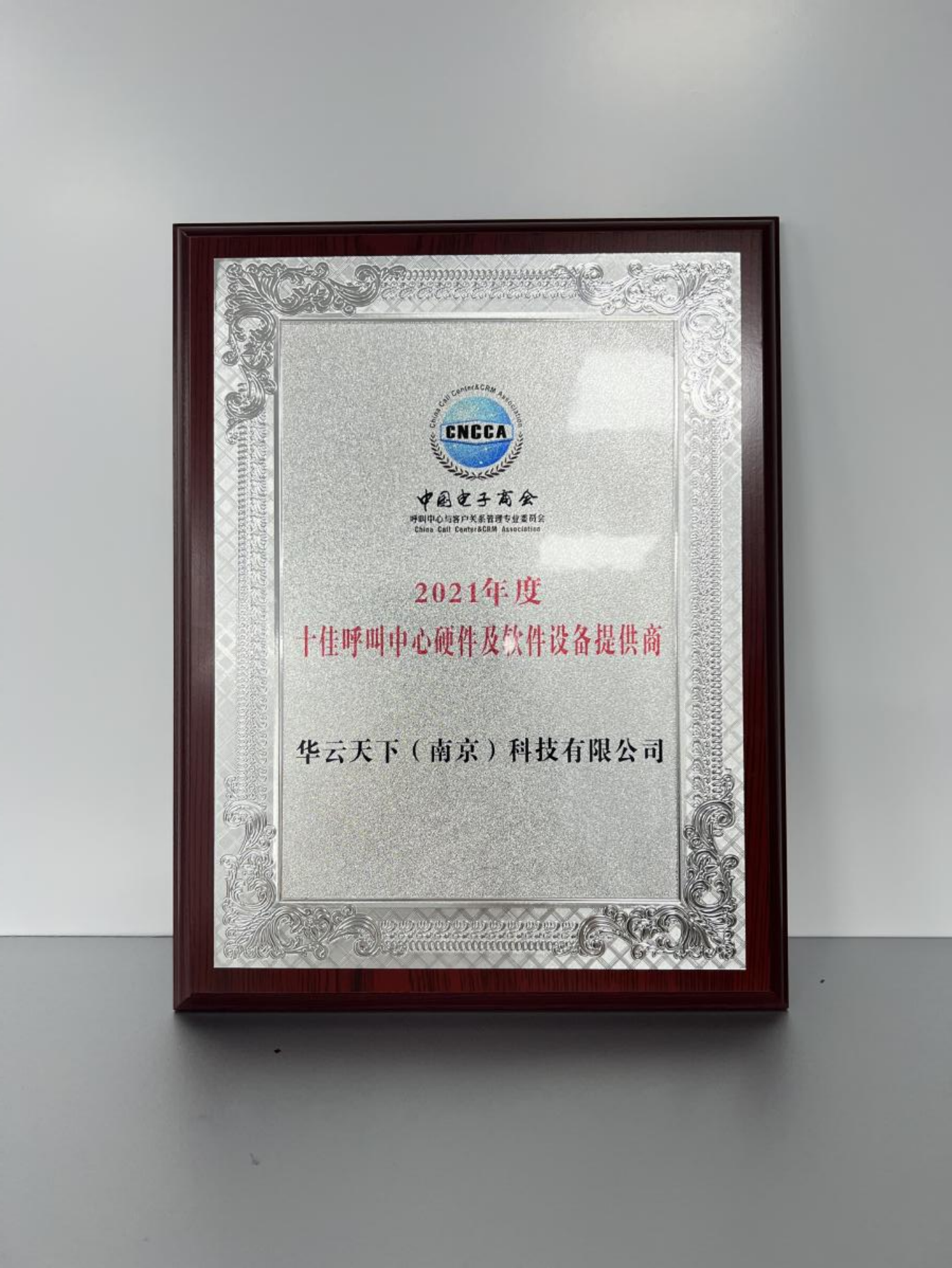 华云天下荣膺“2021年度十佳呼叫中心硬件及软件设备供应商”