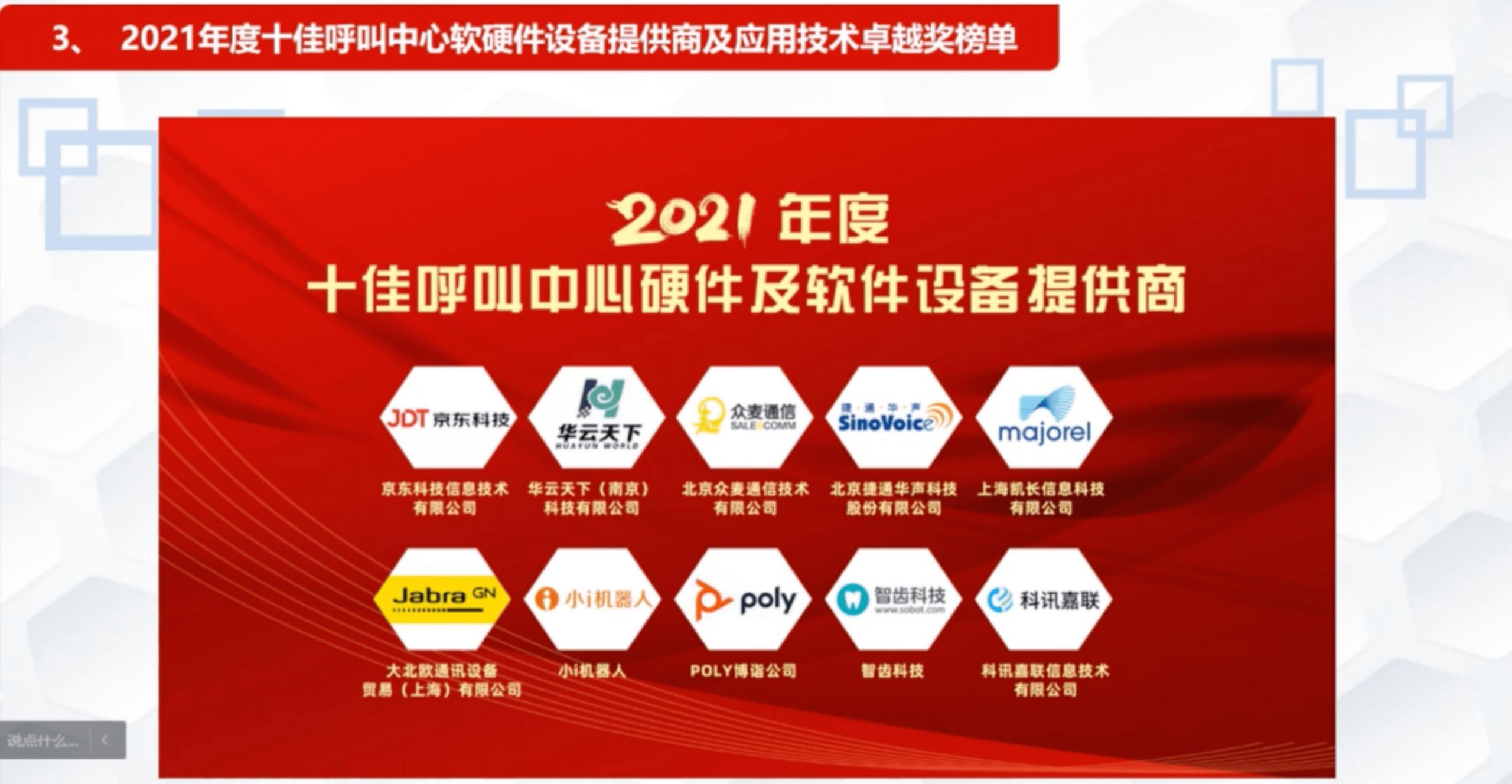 2021年度(第十七届)呼叫中心产业发展峰会暨年度颁奖典礼于2022年4月8日成功举办。华云天下凭借卓越的技术服务和强劲的创新能力,一举荣膺“2021年度十佳呼叫中心硬件及软件设备供应商”。