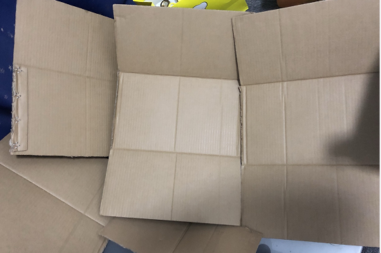 2.接下来制作粮仓。保洁阿姨资助的大纸箱,大概展开每个平面 20*60cm,四个面做了下大约功能划分,一个大纸箱足够。