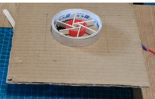 1.首先,制作转轮,用雪糕棒搭一个正六边形,为了更好的固定,我选用瓶盖作为支撑,这样中间可以拧螺丝与电机,后期周边空隙打胶固定。