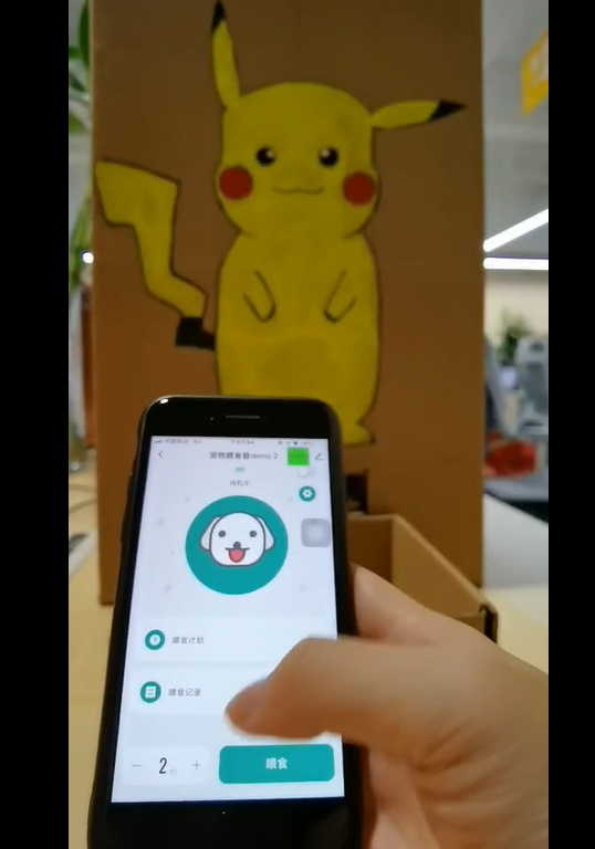 2.手机可操控,点击选择喂食份量