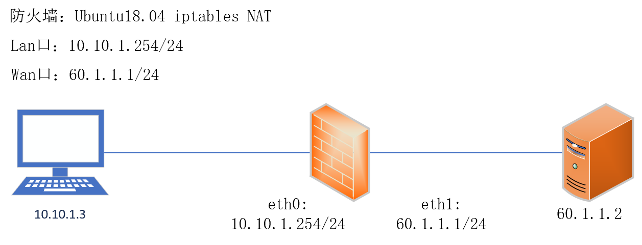 防火墙是Ubuntu18.04系统,拓扑如图所示: