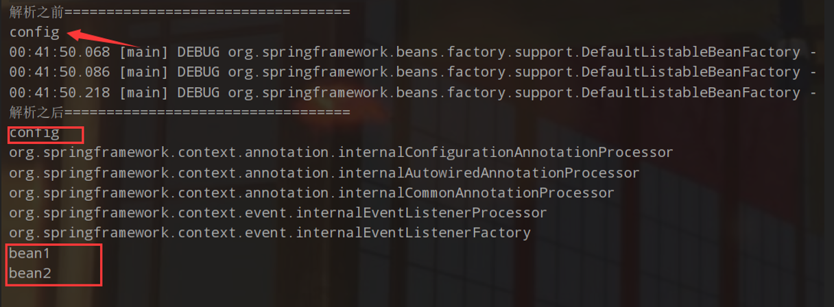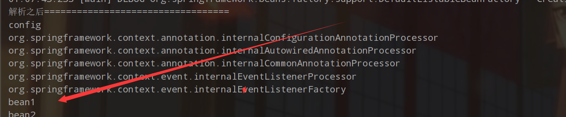 //遍历:在这里还没有给 beanFactory 加Buff 它只能创建config 而不能创建 bean1 和 bean2