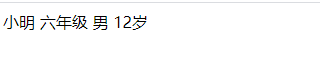 <!-- vue之v-text渲染多值 --> <!-- 需求:使用v-text展示多个data中的数据值 --> <!DOCTYPE html> <html lang="en"> <head> <meta charset="UTF-8"> <title>vue之v-text渲染多值</title> <script type="text/javascript" src="./vue.js"></script> </head> <body> <div id="root"> <div v-text="stuInfo"></div> </div> <script> new Vue({ el:"#root",//挂载点,此时该VUE已经与id="root"的DOM元素进行挂载 data:{ stu:{ name:"小明", grade:"六年级", sex:"男", age:"12" } }, computed: { stuInfo:function() { var user = this.stu; return user.name+' '+user.grade+' '+user.sex+' '+user.age+'岁'; } } }) </script> </body> </html>