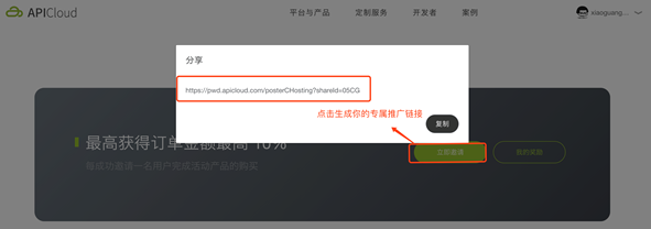 3.了解更详细的推广返现规则:https://www.apicloud.com/rebateInfo#(请使用电脑登录)