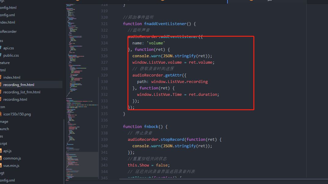 楼主在监听这个接口调用getAttr接口获取音频时长,这样就能配置录音的时间进度00:00:00