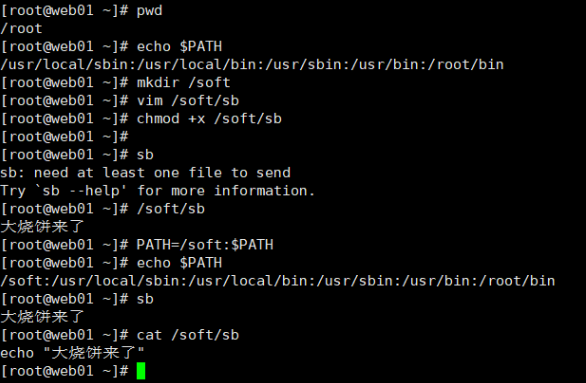 [root@web01 ~]# source /etc/bashrc # 当前环境让该文件生效(或重启也可生效)