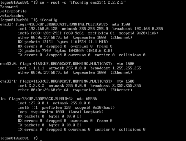 ifconfig ens33:0 1.1.1.1 制作一块虚拟网卡