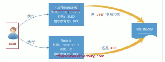 #主要是对一些命令或二进制文件,以该二进制文件的属主权限来执行该文件,以passwd命令为例。