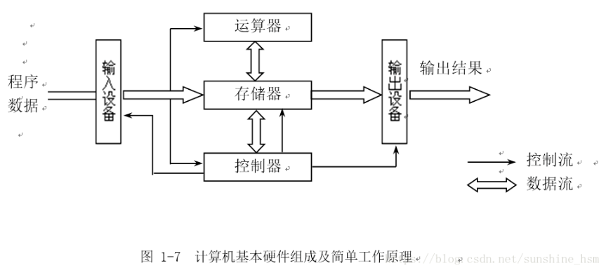 ⑴ 计算机硬件由五个基本部分组成:运算器、控制器、存储器、输入设备和输出设备。