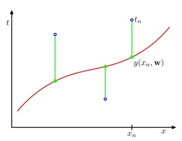 )的差值最小,那么这条曲线一定是表达这些点的最优曲线,有如下公式: