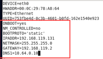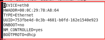 vi /etc/sysconfig/network-scripts/ifcfg-eth0