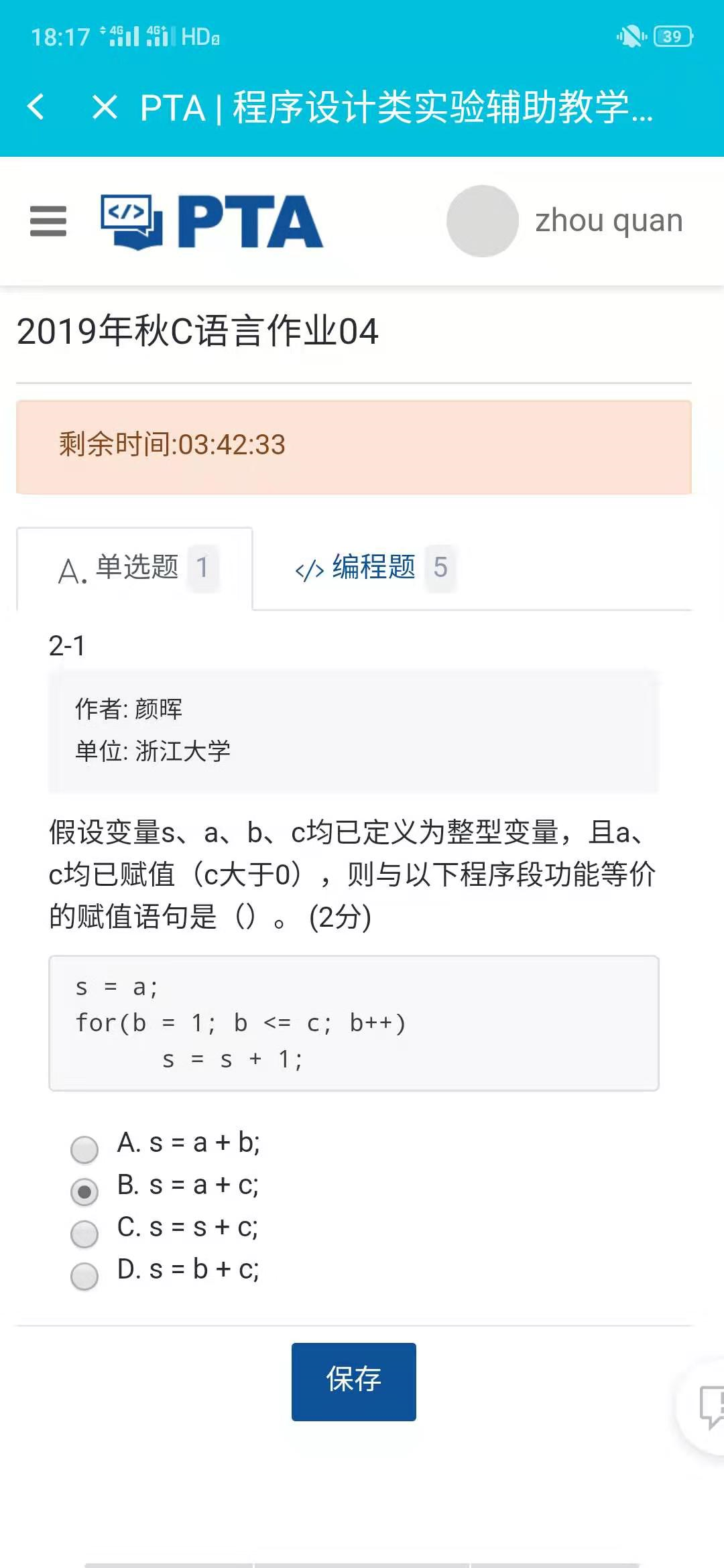 第四题一次性对了。