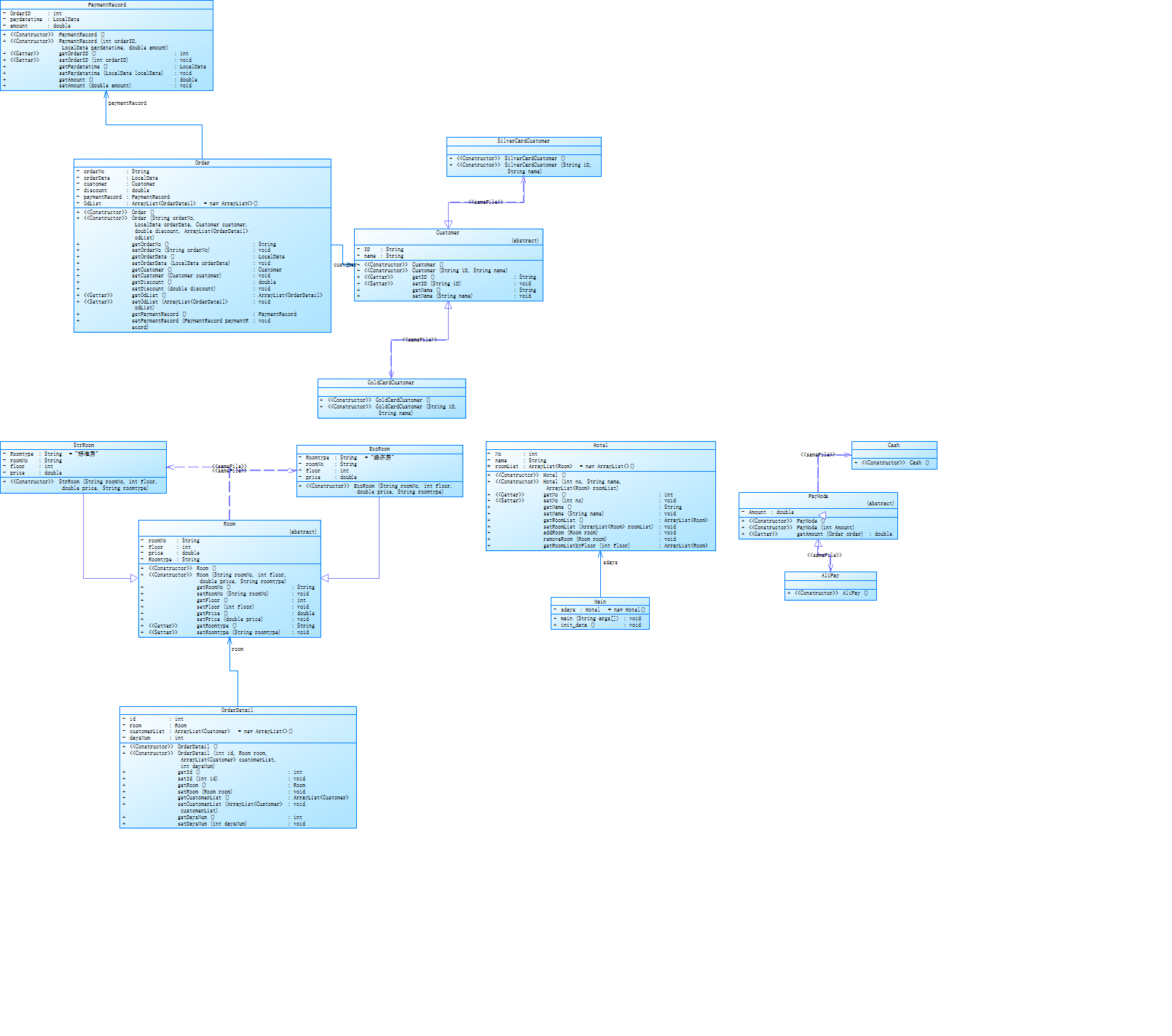 要求按照老师发的类图来写代码,要求有支付方式的选择等等之类还有两个小时要求。