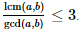 相当于是lcm ∩ gcd,也就是说a与b之间除了素因子w(w=1,2,3),其他的素因子相同,所以a=b*w(a>=b)