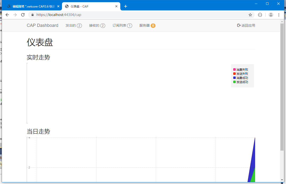 2: 重新编译并启动项目,进入https://localhost:44304/cap ,从打开的界面里可以看到CAP的各种事件和状态。