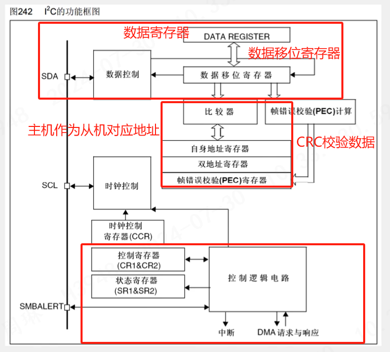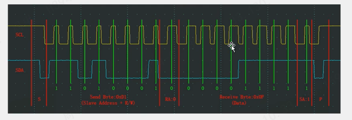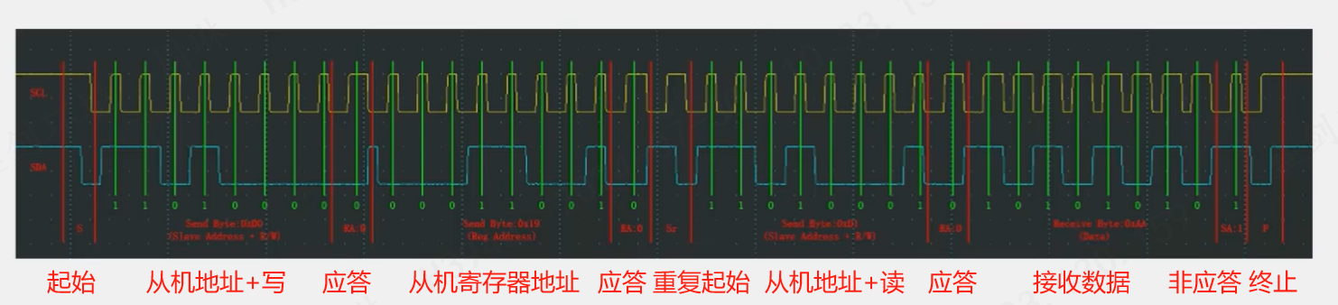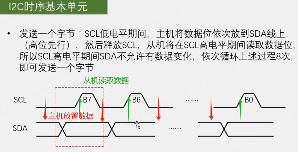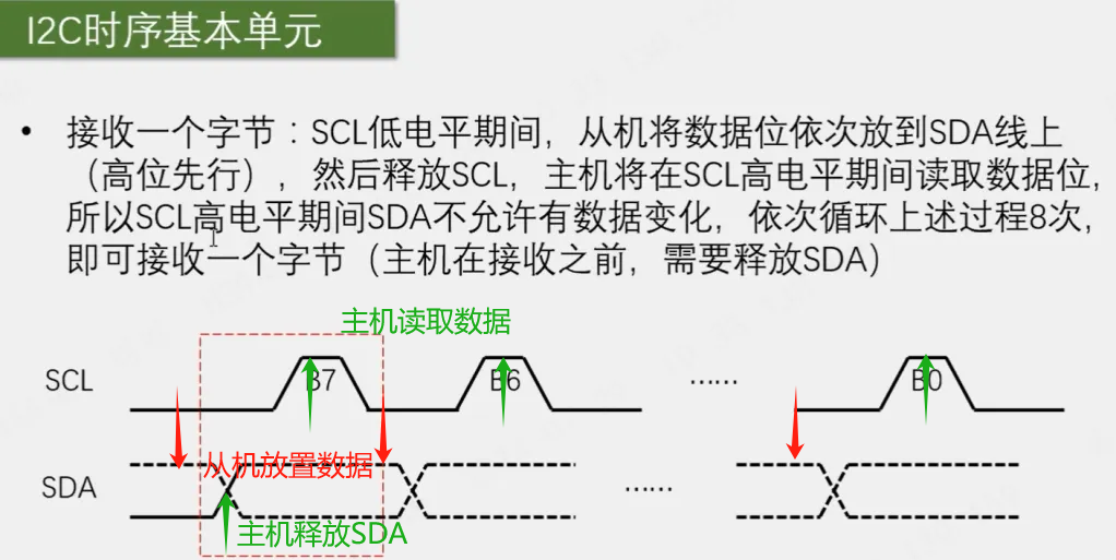 SCL高电平读取SDA的数据,从机在SCL上升沿读取SDA数据