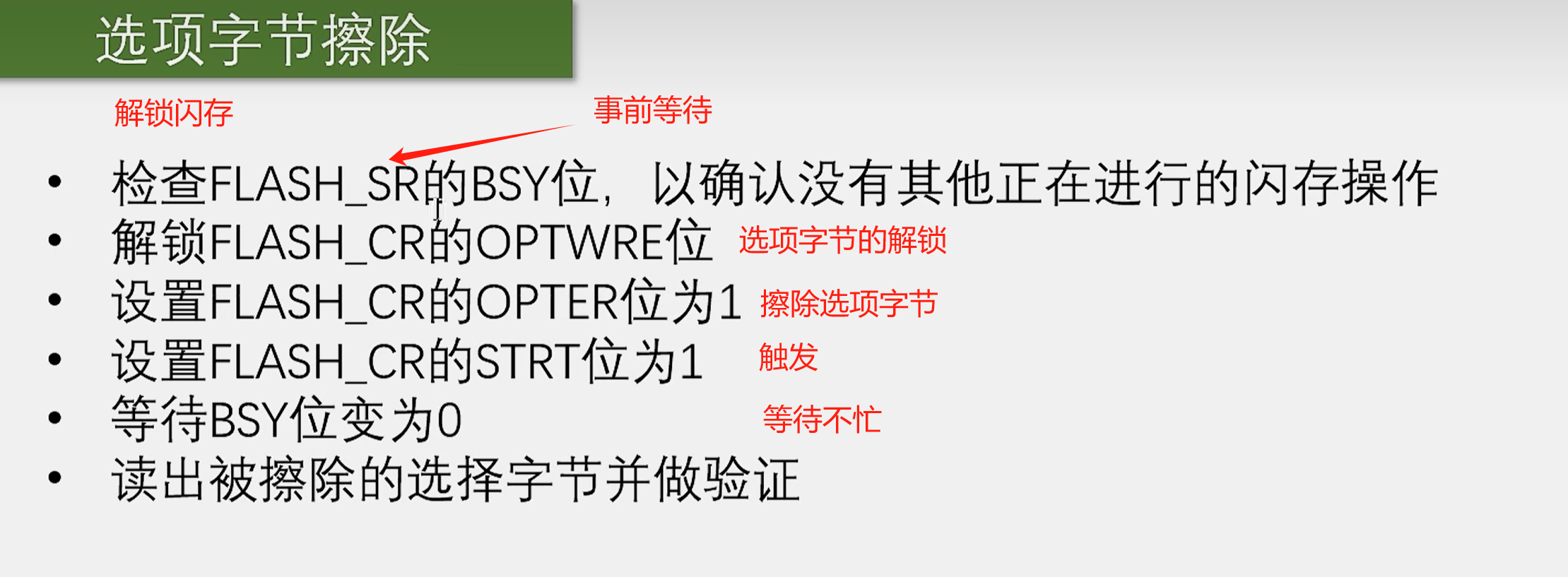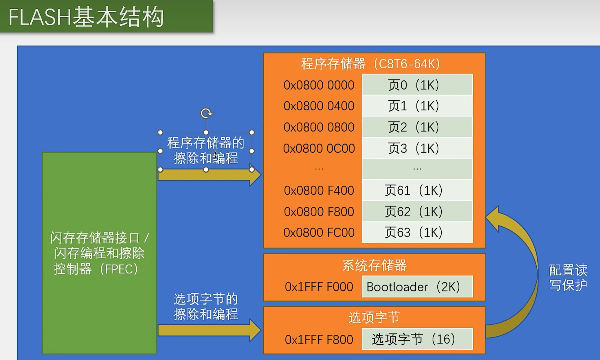 - 当闪存保护由保护变为未保护,会自动执行擦除