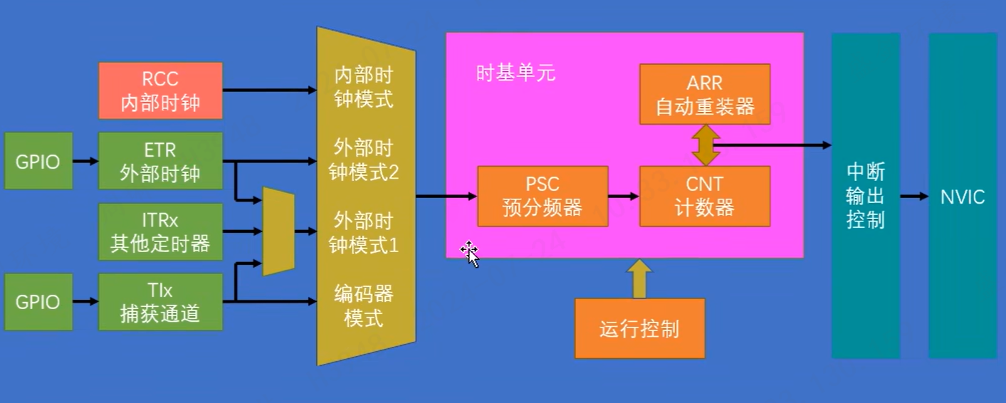 - ARR是计数器,计数器溢出时进入中断