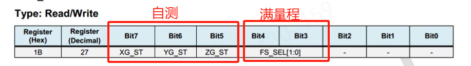 - 自测,使能自测读取数据,失能自测读取数据,两个数据在芯片所规定的范围内则认为芯片正常
