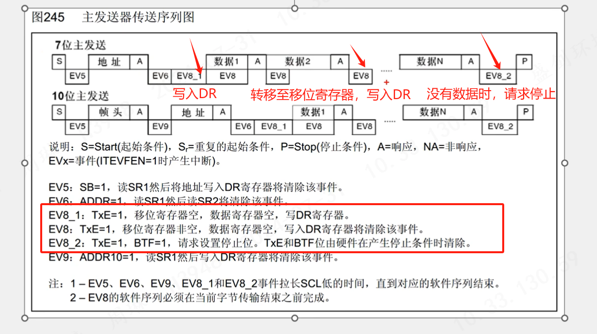 SCL下降,置低电平,主机在SCL下降沿时候,将数据放在SDA上传输下一位数据