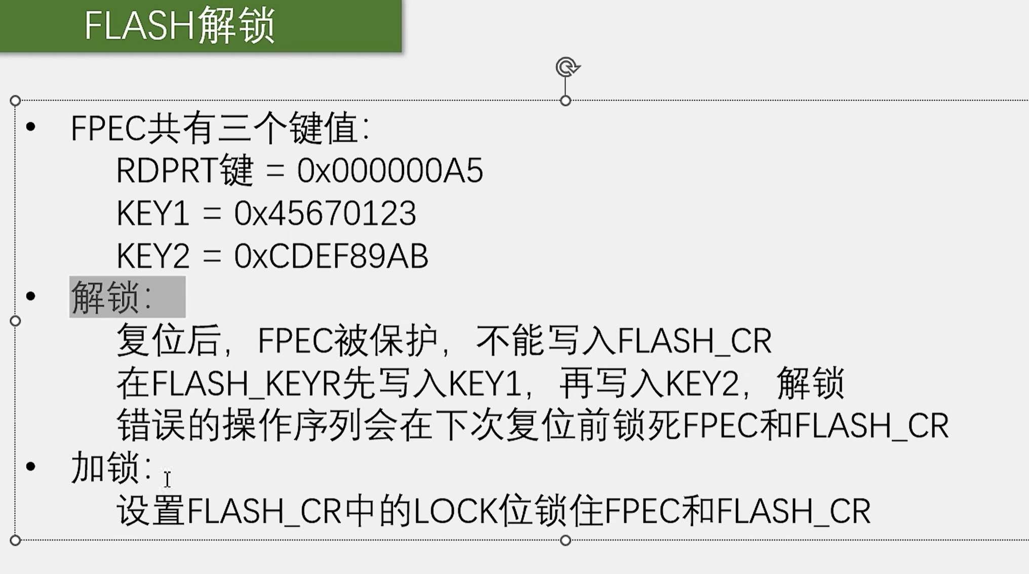 - FPEC键寄存器(大锁) OPTKEY(小锁) 写入Key1,再写入Key2解锁