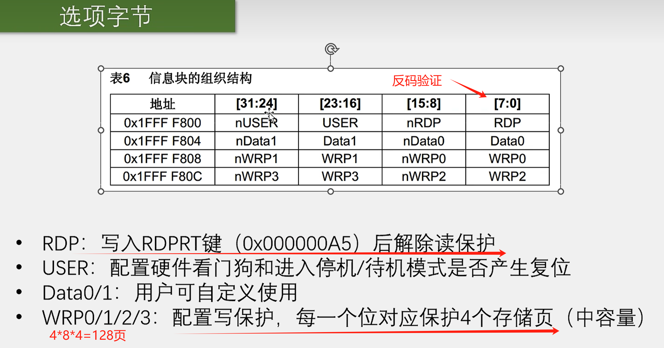 - WRPx写保护的位1有效,0无效