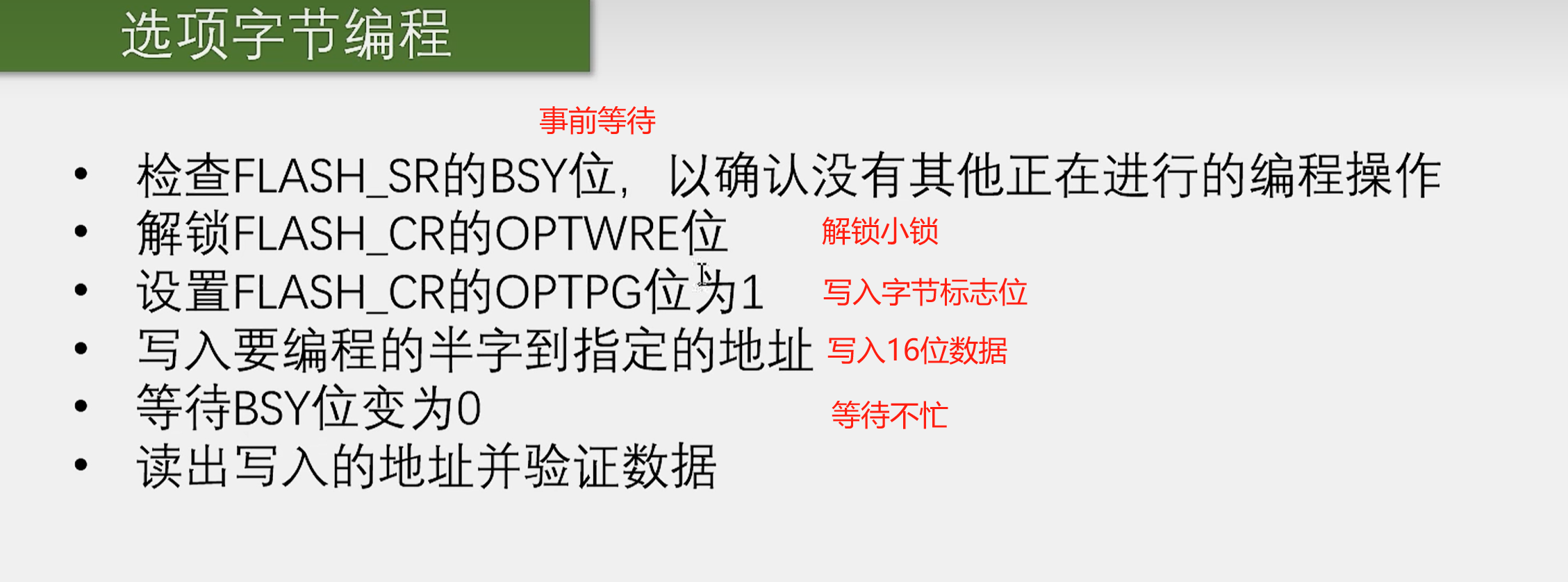 - 指定地址没有擦除,无法执行编程并警告,除非写入数据为0x0000